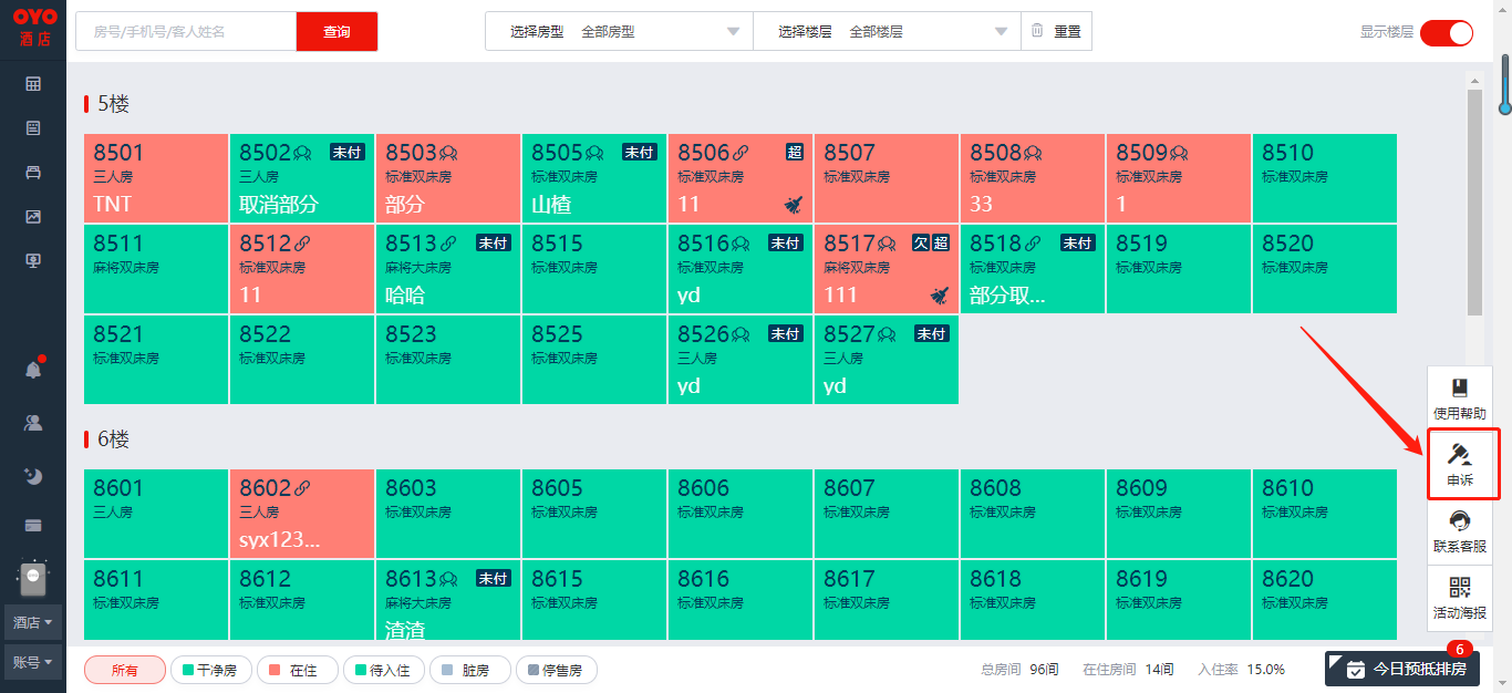 - 选择需要申诉的房单,可多选,选中后房单后方会有“√”标识